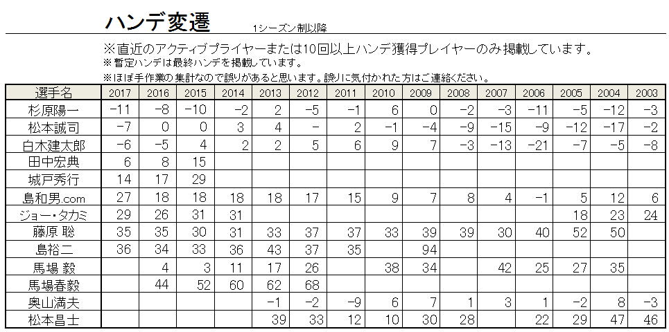 第43期(2017年度)ハンデキャップ