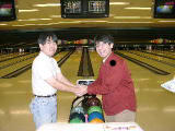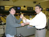 | 昨年に引き続き、第1ゲームから熱のこもった試合展開。とくにゲーム開始3フレームはお互いにストライク・スペアを交互に取り合う200点ペース。頂上決戦にふさわしい幕開けとなった。その後、第4フレームをオープンした岩田に対し、白木は着実にスペアを確保、けっきょく10フレまで白木はオープンすることなく、フルマークの偉業で緒戦を取った。 第2ゲームは、お互いスタートの2フレをオープンするという波乱の幕開け。しかし3フレから白木が軌道修正に向かったのに対し、岩田は波に乗れず、連敗を喫した。後から振り返ると白木の乱調はこの第2ゲームの序盤だけで岩田としては千載一遇のチャンスを逃してしまったといえる。 第3ゲームも白木は全く隙を見せず。安定したフォームから繰り出されるコントロールされたボールで着々とマークを重ねて、岩田にプレッシャーをかけ続けた。岩田としてはストライク・ラッシュで優位に立ちたいところだったが、逆に力みが入り、ますますコントロールを乱すという悪循環。 第4戦も白木はスプリット以外は全てマーク。最後の最後にこの日、初となるターキーを決め200UP、シリーズを締めくくった。 白木は4ゲーム通してオープンしたフレームがたったの6(うちスプリット2)とアベレージボウラーにふさわしい安定した内容で4戦全勝で岩田を下し2度目となる年間チャンピオンに輝いた。また千里シリーズ2位となるアベレージ185を記録。 |