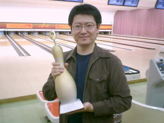 | 岩田選手は予選第2ゲームからボールがレーンの中央に集まらない。第1ゲームはノーマークで129(71)。一方の松本誠選手はスペアを重ねたあと、5連続ストライク。中盤でハンデ差を解消。圧勝した。 第2ゲームも第1ゲームのカーボンコピーの展開。松本誠選手は始めの2フレこそオープンしたものの4フレからまたも5連続ストライク。これまた中盤でハンデ差を解消。圧巻の連続200Upで2勝、優勝に王手をかけた。 第3ゲームは松本誠選手がスプリット禍に巻き込まれ自滅。一方の岩田選手はボールが集まりだし、中盤には4連続マークも記録、復調した。 第4ゲームはこの日最高に盛り上がった試合となった。完全復調した岩田選手が中盤に6連続マークを記録すれば、松本誠選手も1フレのスプリットを除き、フルマーク。中盤からの4連続ストライクなどでスコアを伸ばす。10フレで岩田選手はオープン、一方の松本誠選手はスペア。ラストの一投で9ピン倒せば松本誠選手の勝ちが決まる所だったが、倒れたピンは6本。2ピン差で岩田選手がこのゲームを取り、2勝2敗のタイとなった。 最終第5ゲームは松本誠選手が3連続ストライクで幕を開け、一方の岩田選手は3連続オープン。いきなり50点の差が縮まったが…。 4フレからは急に風向きが変わったように攻勢が逆転。岩田選手のオープンが減り、オープンフレームも得点を重ねるようになった。一方の松本誠選手は4フレからこの日唯一となる4連続オープン。後半ストライクを重ねるも焼け石に水。13点差で岩田選手がこのゲームも取った。 岩田選手は、2連敗のあとの3連勝で千里シリーズ初優勝を決めた。また奈良県勢としては初の優勝で、優勝トロフィーはこの日、生駒山を越えた。 敗れた松本誠選手も、千里シリーズ一位タイ記録となるストライク平均5.0・200Up3度、2位の記録となるアベレージ188.4などスコア的には素晴らしいものだった。 |